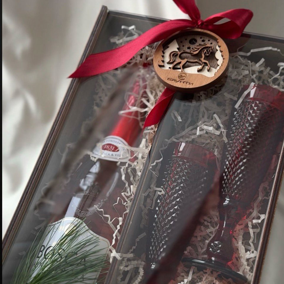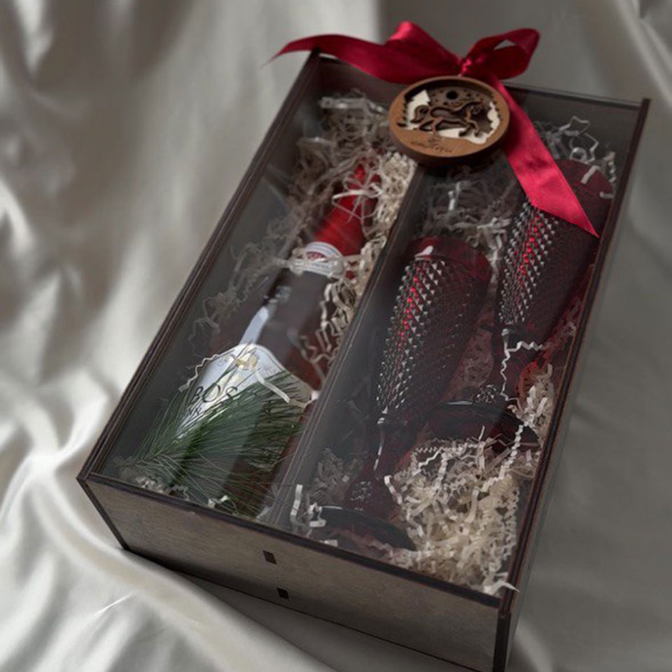 2 фужера для шампанского* (Алкоголь не входит в стоимость, бокс закрывается оргстеклом)